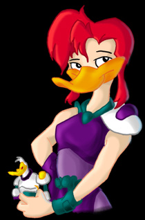 You see a good looking, red haired duck standing calmly for the moment. You might call her a 'babe', but you get the feeling that you'd regret it if you did... "Mallory here and because no one wanted me around anything that even *looked* technical, I get to show off the toys... This is worse than KP duty!! Tho I hear that some of these things can be pretty dangerous.... Anyway, this is going to be a page listing all known MD:TAS stuff. Calista has a *huge* collection so as soon as she can start taking pictures of it, well have pics and descriptions of all of the 'stuff' Later on, there will be a trading post type of thing, where you can buy and trade MD merchendise. 'Please' Do not break anything in here, or I will be forced to HURT you!".