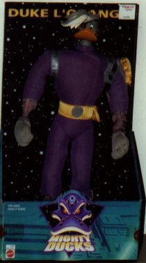 Whoooo! I took a trip to the Disney store the other day, and almost PASSED OUT on the floor when I turned the corner and found a Mighty Ducks Ducksaber! Yes!!! They made one! A tabletop hockey game too! But I don't have a pic of it yet, because it's too big to fit on the scanner ;P I asked the manager of the store what was up with this, and they said they 'just' got this merchendise in, and it's brand new. Its JUST for the Disney store, So go there! They have spy Squad figs, Wildwing and Grin banks too!