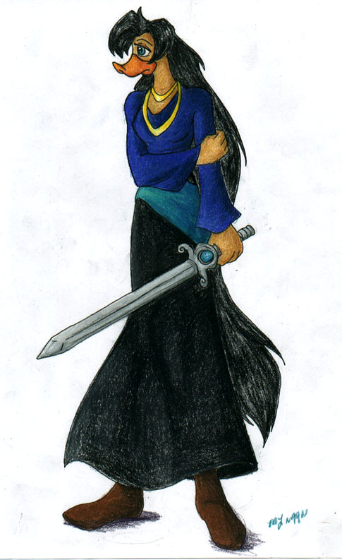 Brief History: Considered a giantess among her people she was exiled atage16. Before she left she was taught swordmanship by her father. She hadknownhow to handle a sword since she was 8 years old. She wandered the roadfor 2years before joining a band of gypsies. She was adopted by DahliaDrakespia,chief magic wielder of the gypsies. Clarissis learned many things aboutweapons and magic during her 7 year stay with the gypsies. Upon meetingNosedive she begins to teach him all she knows. She exchanges blood withDiveand becomes his blood sister. They strike out on their own whilesearchingfor Dive's past and eventually end up joining the Dragon Keepers. Shenowresides with Onyx (Dive's dragon name) in the castle keep of Thoones.Shefound her shotgun on a recent trip to the island of lost souls.