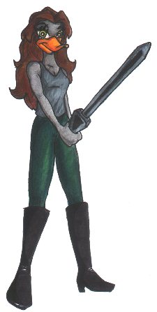 She is Duke L'Orange's little sister. She joined the Brotherhood of the blade in order to be with her bro. She is not as high in rank but is still a dangerous woman. She made it to earth by trickery and deceit seeking Duke. She now resides in the Pond and adds her help to the others. Lately, she seems to have a suffered a mental break down, and will attack anyone, including friends.