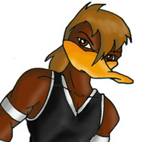 Appearance: Man, is this guy a HUNK! All women swoon at the very sight of him. Then again, ANY woman would, with HIS apperance. Kirtland has dark brown feathers, covering a muscular build. He has it all; muscular arms, muscular chest, washboard abs, the WORKS. Hes not huge like Grin, but hes still very muscular and bulky throughout his entire body. His hair, a light brown color, reaches his mid-back, which he keeps tied in a low ponytail. Two pieces of his hair on top of his head flake upwards, and a thick strand is between his eyelids, nearly touching his beak. Two other strands of his hair flakes downwards, two small pieces nearly touching his light brown eyebrows. His eyes are a dark brown; almost black, actually. If one looks at his eyes closely enough, they hold a special type of shine. They either sparkle in fury, or in fascination of a beautiful woman.