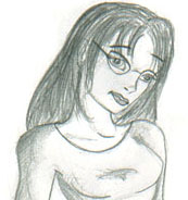 <grins> She is extremely far-sighted, so she wear glasses.