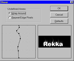 Do Filter > Distort > Shear. Now try giving the flames the curling and fire-action you want! The pic on the left is what I used for my sample Rekka.
